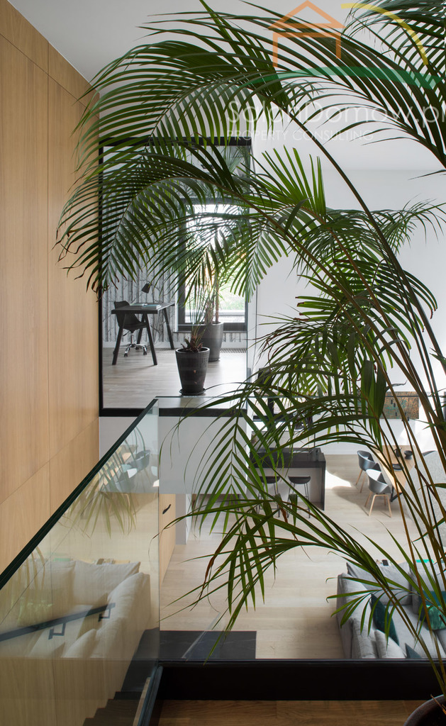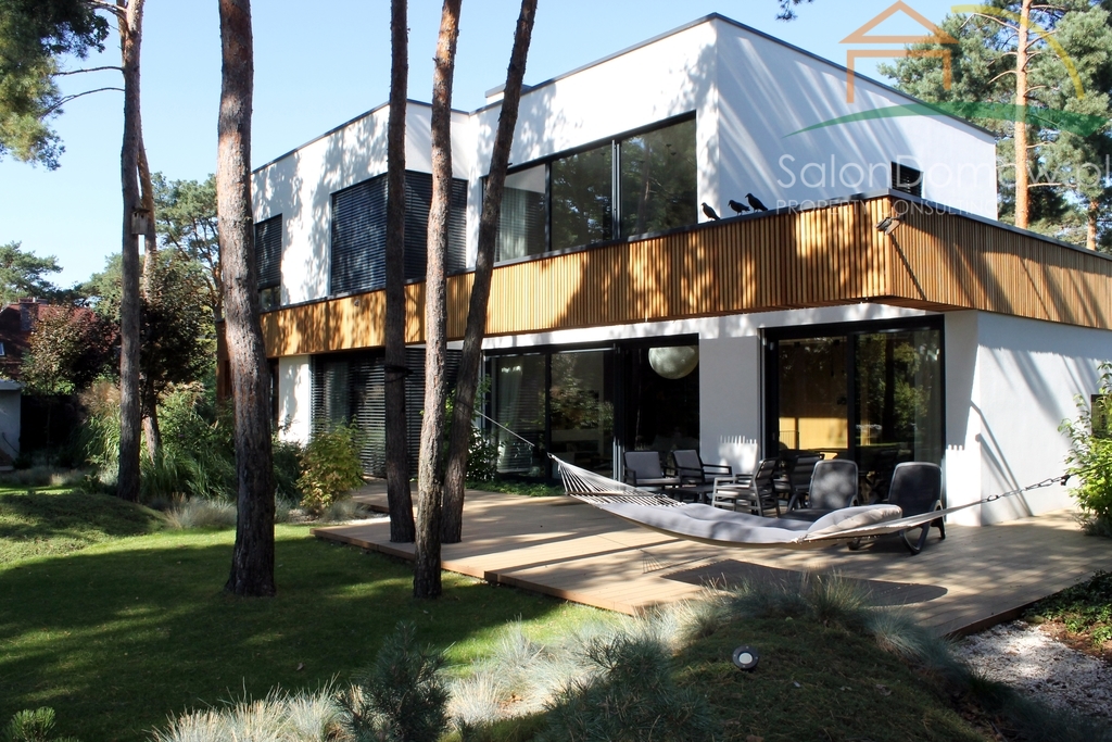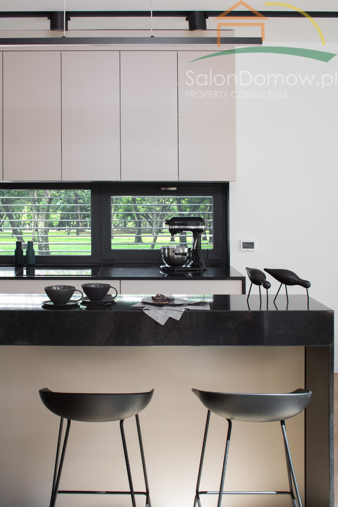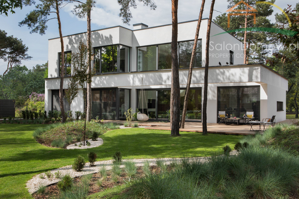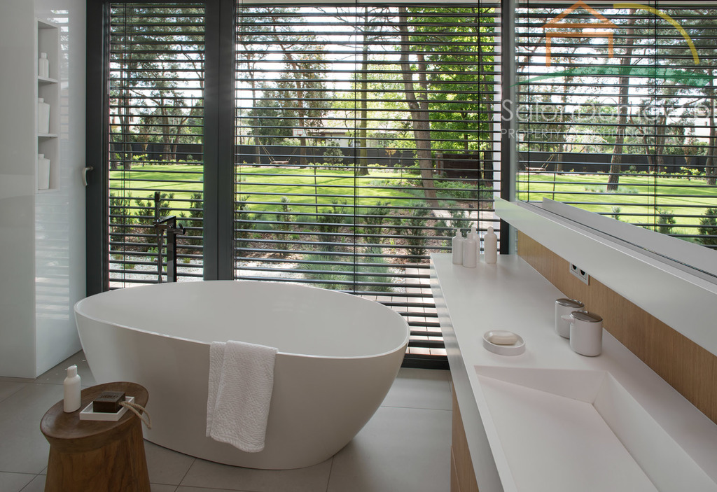 Dom jest w większości przeszklony - powierzchnia przeszkleń wynosi aż 120 m2 a aluminiowe okna z potrójnymi hartowanymi szybami Ryanairs o bardzo niskich współczynnikach energetycznych zapewnią niespotykany komfort termiczny zarówno latem jak i zimą. Trzy bardzo duże okna typu HS na parterze otwierają dom na wspaniały ogród. Dom wyposażony jest w najlepszy system KNX (dawniej EIB), czyli najbardziej dojrzały i sprawdzony standard sterowania inteligentnymi domami i budynkami na świecie, który wraz z dedykowanym, unikatowym osprzętem Gira oraz serwerem umożliwia automatyczne zarządzanie domem także za pomocą smartfona oświetleniem - jego jasnością w zależności od pory dnia/roku, żaluzjami zewnętrznymi, ogrzewaniem, nagłośnieniem oraz rozbudowanym systemem alarmowym monitorującym wnętrze domu oraz teren zewnętrzny dzięki kamerom, czujkom zalania, gazu, temperatury w podłodze.