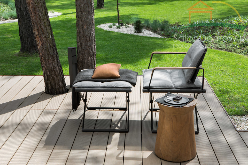 Dopełnieniem całości jest unikatowy ogród ( działka 1709 metrów w z pięknym starodrzewiem sosnowym wraz z licznymi nasadzeniami roślin (derenie, wrzosy, lawendy, śliwy wiśniowe, młode sosny, irgi, czosnek ozdobny, ponad 1000 krokusów, ozdobne trawy, sosny górskie i bośniackie, szałwie, budleje, macierzanki, cisy, duże graby, klony oraz okazały 60 letni dąb górujący nad działką.