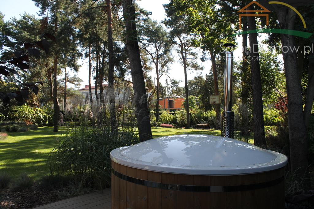 - w ogrodzie bania ruska ogrzewana drewnem do użytkowania zarówno latem jak i zima, wraz z zewnętrznym prysznicem wykonanym ze szlifowanego betonu.
