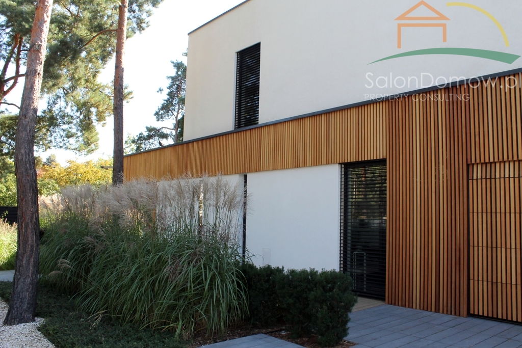- elewacja z cedru kanadyjskiego, którą pokryto również bramę garażową licując ja z reszta elewacji