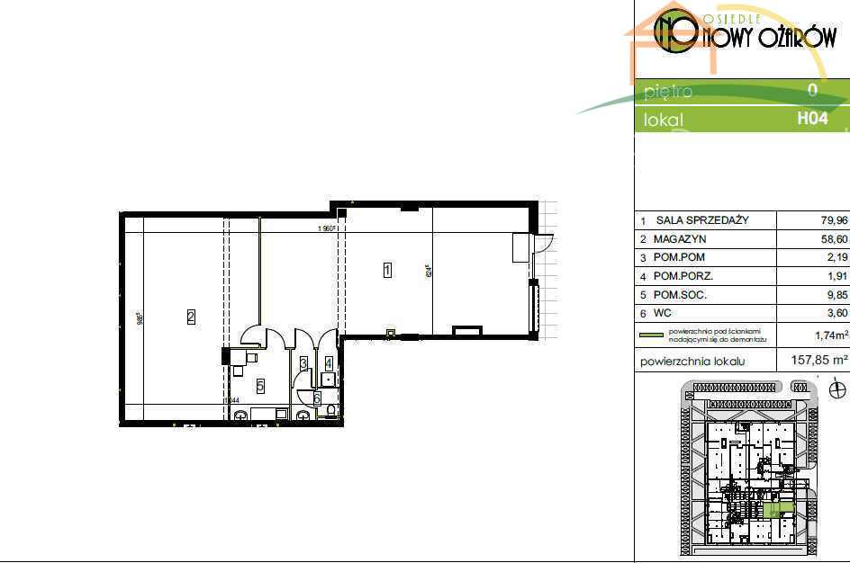 Lokal usługowy do własnej aranżacji (stan developerski) w inwestycji Nowy Ożarów w kwartale ulic Szkolnej, Nadbrzeżnej, Jana Zamoyskiego gdzie w ostatnim czasie powstało kilkanaście inwestycji developerskich i zamieszkało tam kilka tysięcy osób, co stwarza bardzo duży potencjał dla szeroko pojętych usług dla mieszkańców. Lokal znajduje się na poziomie zero, w trzypiętrowym budynku mieszkalnym, posiada trzy miejsca postojowe w cenie 18 tys za jedno. Lokal z witryną, wysokość 3,3 metra, z zapleczem socjalnym i sanitarnym.
