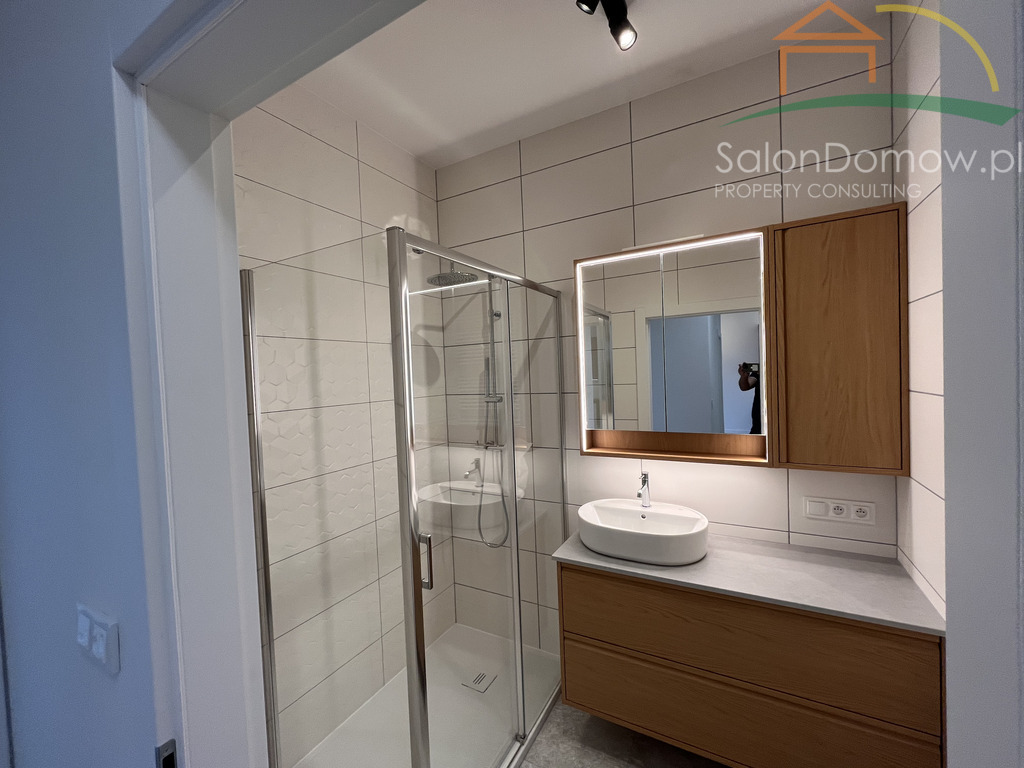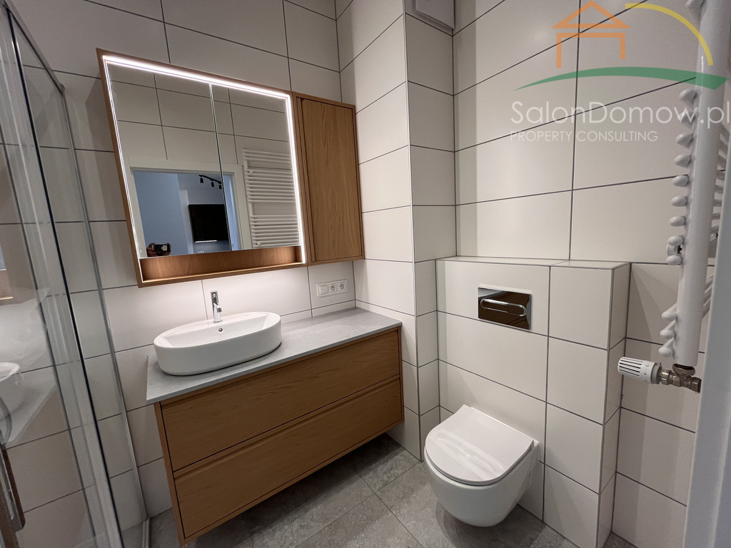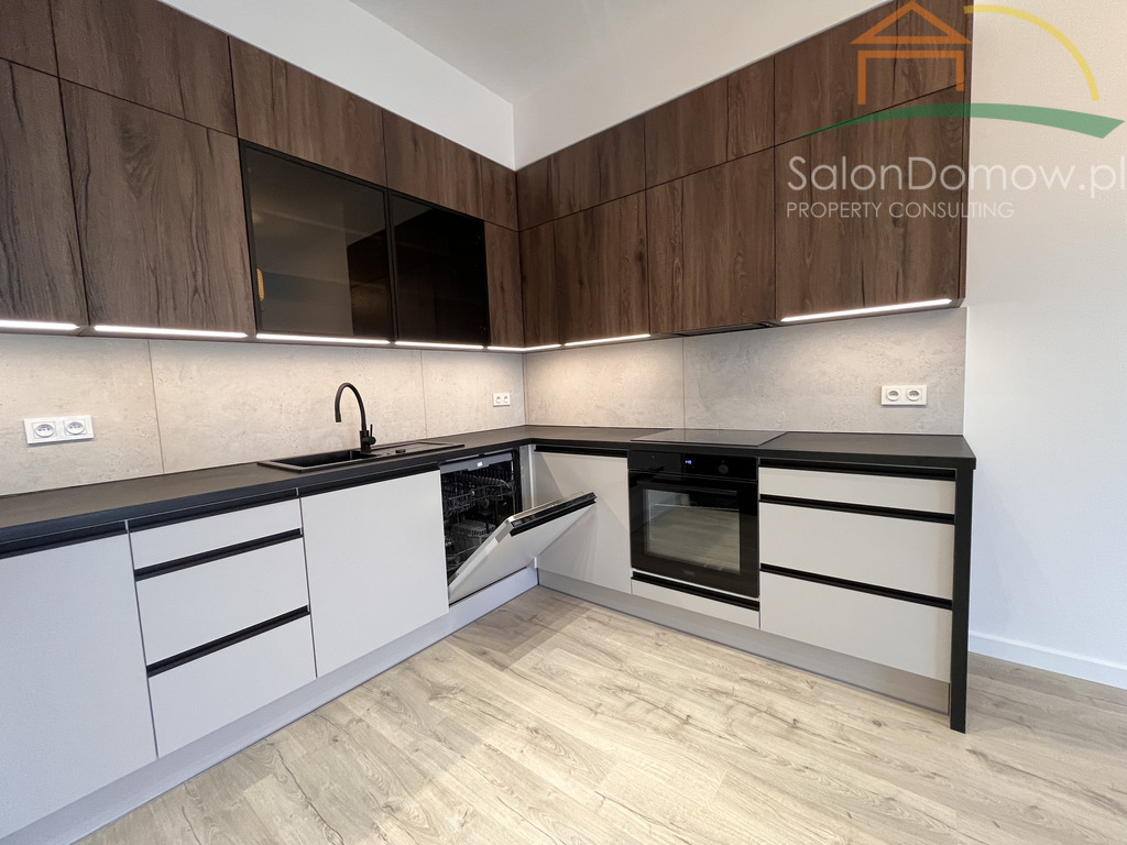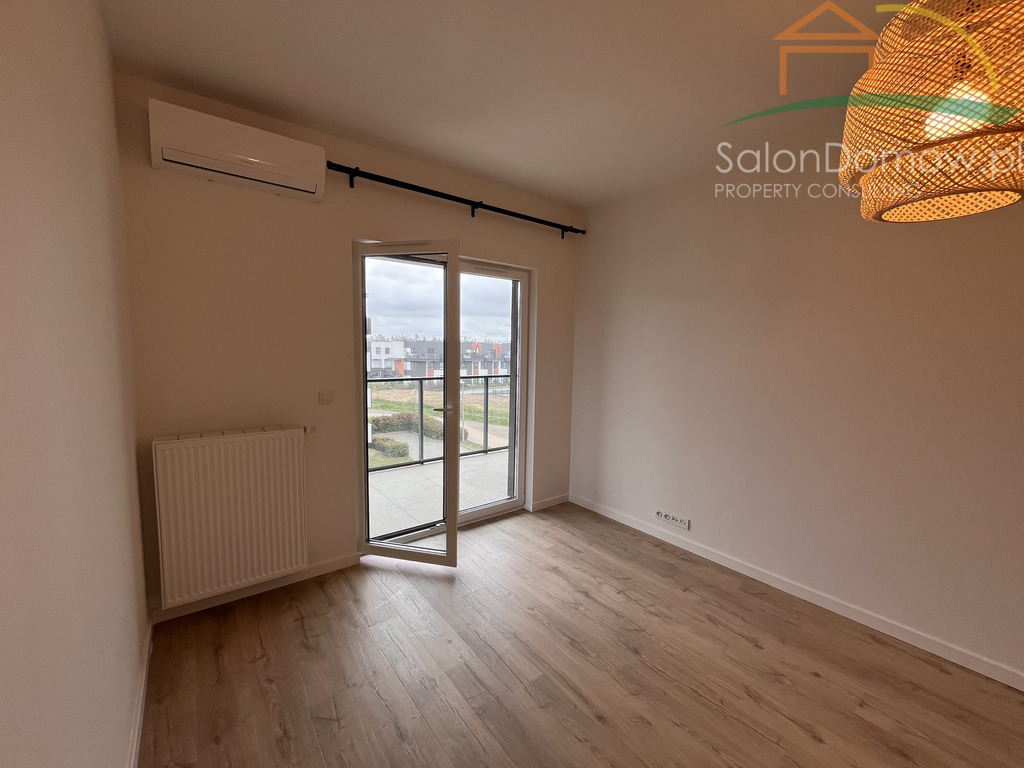 Mieszkanie wykończone, nowe, nigdy niezamieszkałe na podłogach wysokiej jakości panele podłogowe, urządzona i wyposażona kuchnia (lodówka, piekarnik, płyta indukcyjna, pralka) meble kuchenne na wymiar. W pomieszczeniu widocznym na planie mieszkania jako WC - jest pralka i moźe to być garderoba, w przedpokoju wykonana zostanie szafa systemowa w cenie mieszkania. Klimatyzacja marki Hyundai.